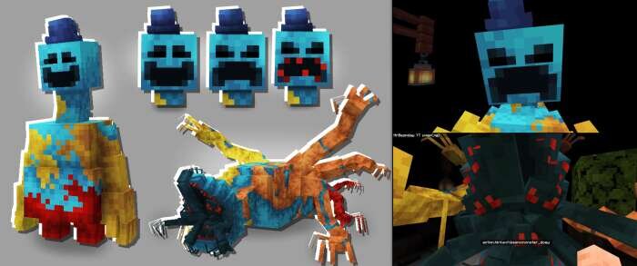 Мод Poppy Playtime by MeBesm добавляет в Minecraft жутких персонажей, платформы и уникальные двери.