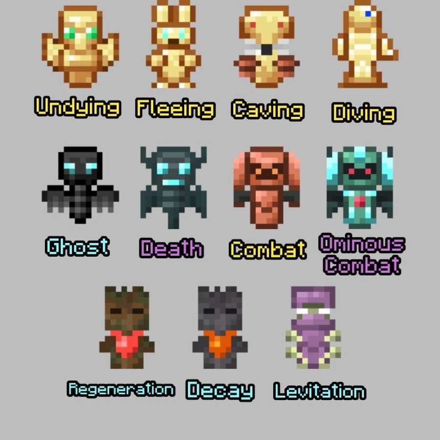 - Тотем разложения: иссушение на врагов на 10 секунд в радиусе 3 блоков при установке (создается из Тотема регенерации, крафтится в Тотем регенерации)