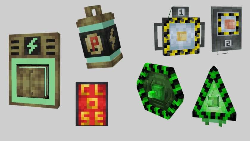 - Блоки с батарейкой: вставляем батарейку — дверь открывается, ударяем еще раз — батарейка возвращается, дверь закрывается